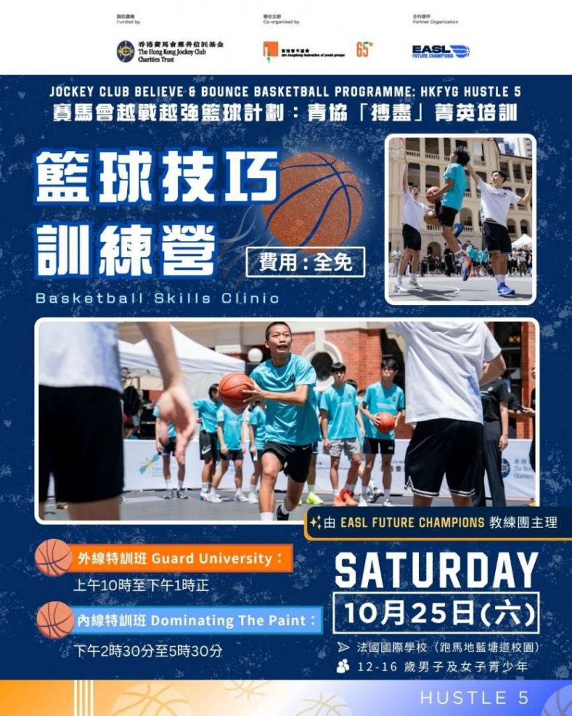 【賽馬會越戰越強籃球計劃:青協「搏盡」菁英培訓】Hustle 5 籃球技巧訓練營現正招募