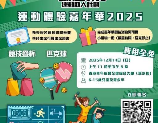 仲有點少得運動體驗班🤩 今次活動安排試玩近期好受歡迎嘅匹克球🏓同埋有趣又好玩嘅體適能挑戰💪🏻 🤩 預先報名準時出席仲會有出席證書!不過名額有限大家快啲報名喇!