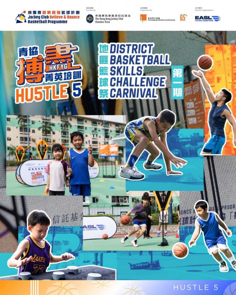 「賽馬會越戰越強籃球計劃​:青協『搏盡』菁英培訓」,青協聯手東亞超級聯賽旗下 EASL Future Champions為12-16歲青少年提供專業籃球訓練💪!為咗將籃球熱潮帶入社區,Hustle 5地區籃球祭喺上星期日已經完成咗第一期活動啦🔥!我哋一齊嚟回顧吓當日有啲咩挑戰啦🤩🤩